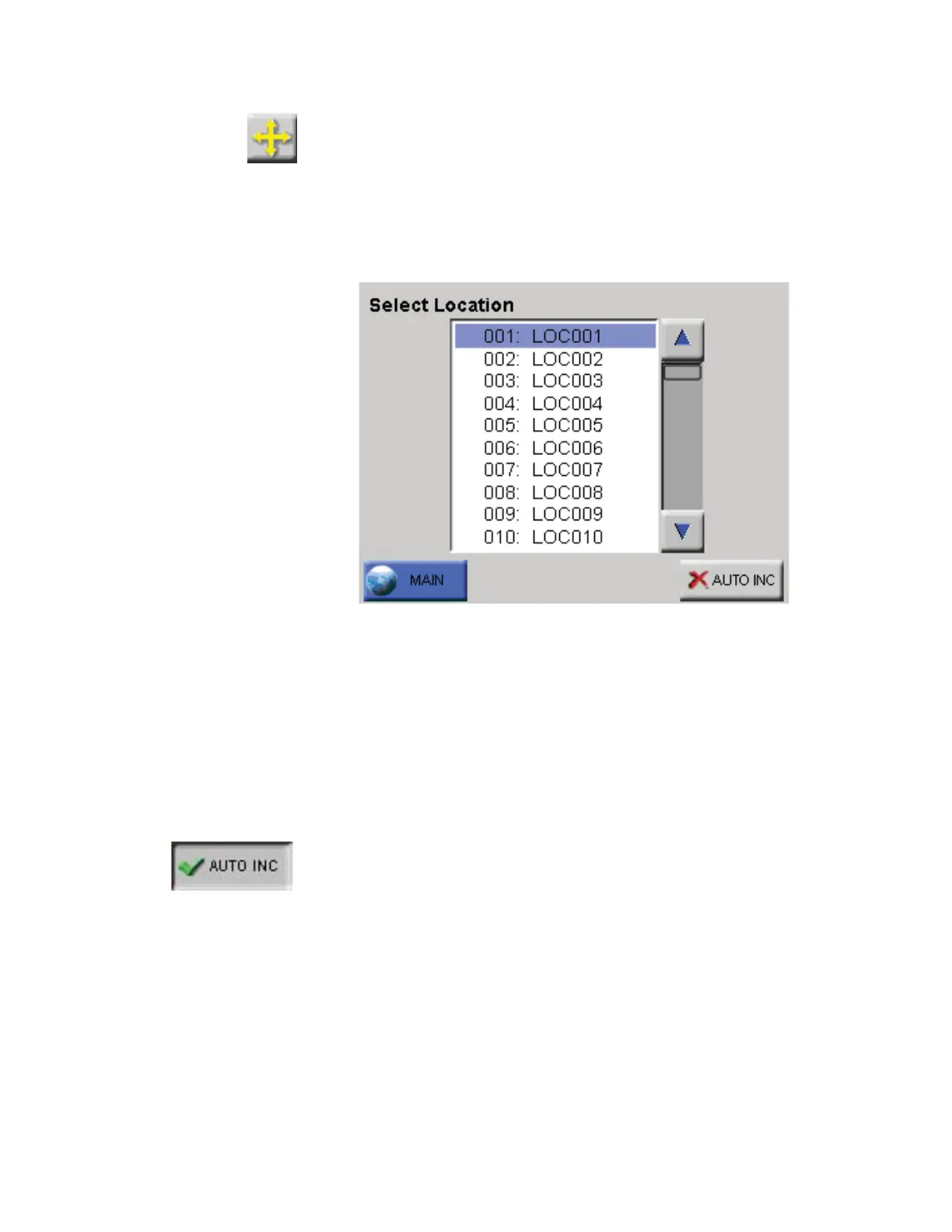 • Use the UP and DOWN arrows to select a location. The single