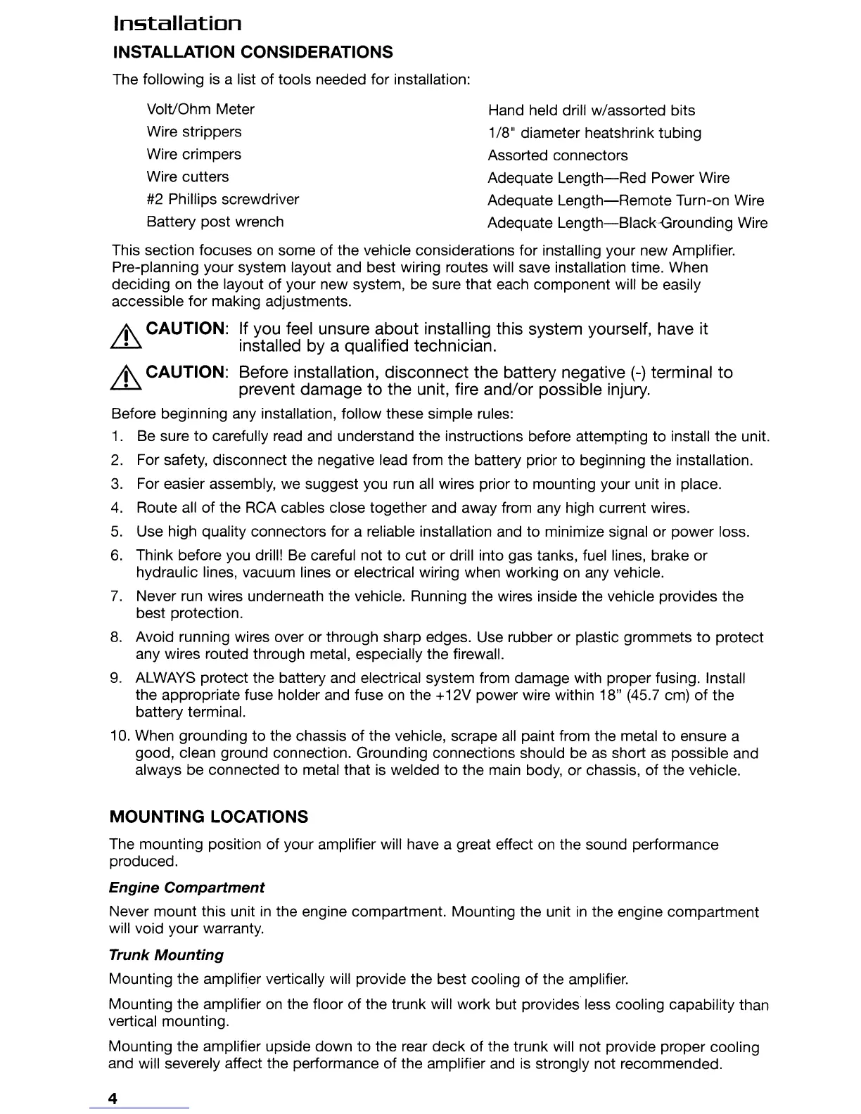 some of the vehicle considerations for installing your new Amplifier.