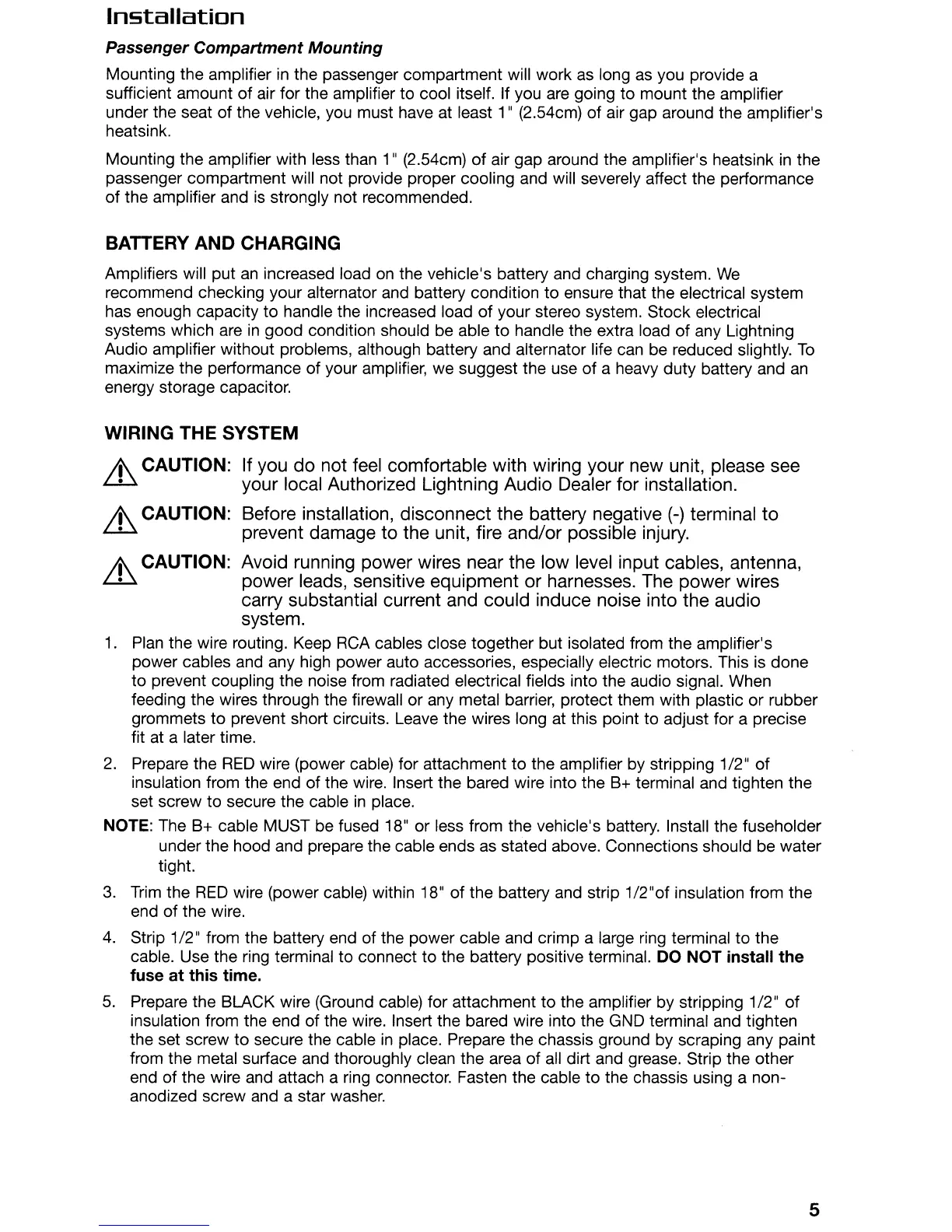 maximize the performance of your amplifier, we suggest the use of a heavy duty battery and