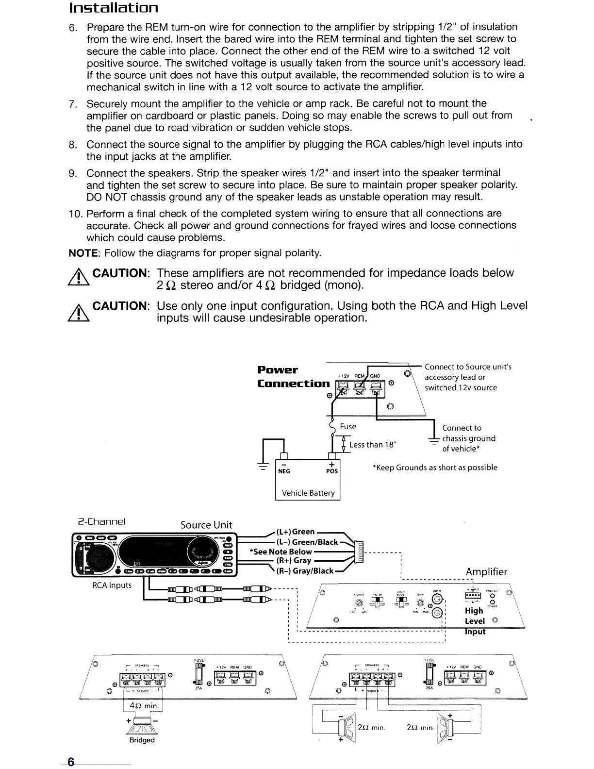 9. Connect the speakers. Strip the speaker wires 1/2" and insert into the speaker terminal