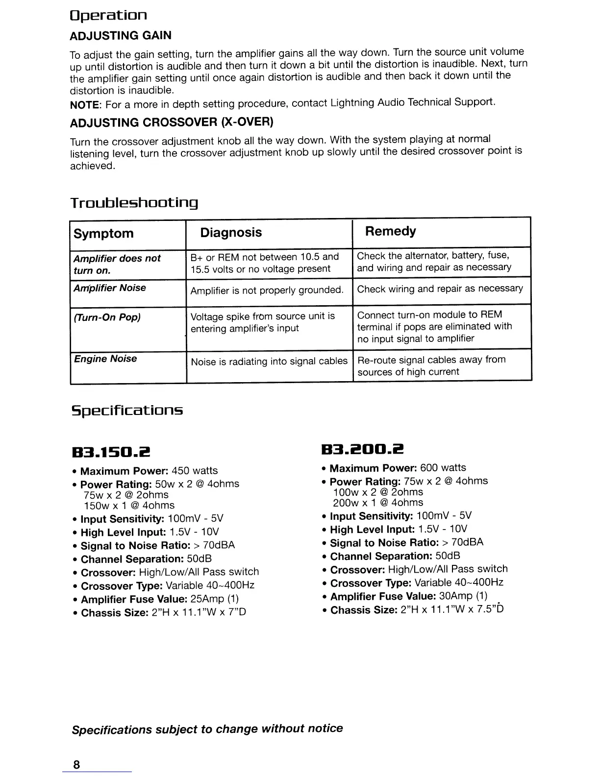 NOTE: For a more in depth setting procedure, contact Lightning Audio Technical Support.