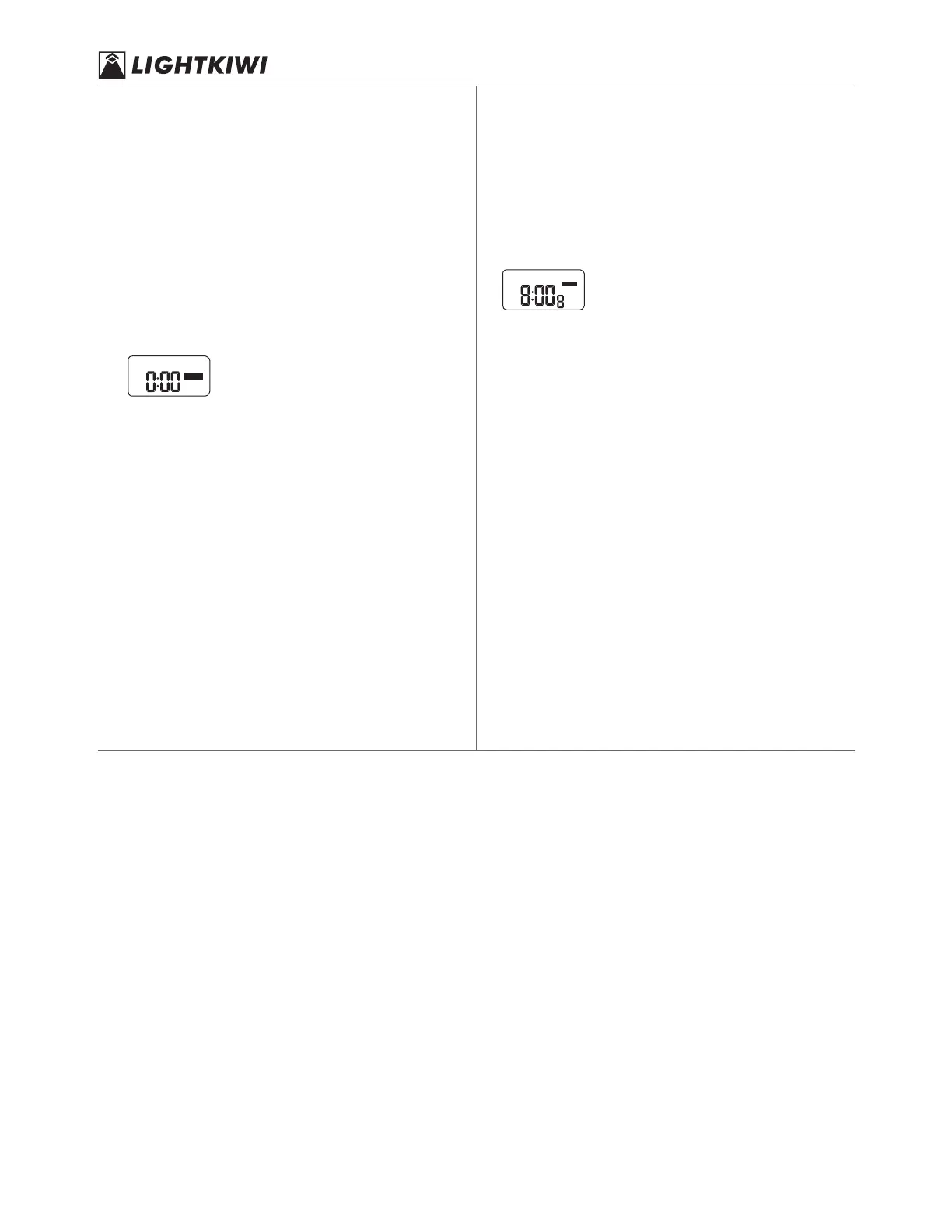 The screen display cycles in the following order 0:00 > 0:05 >