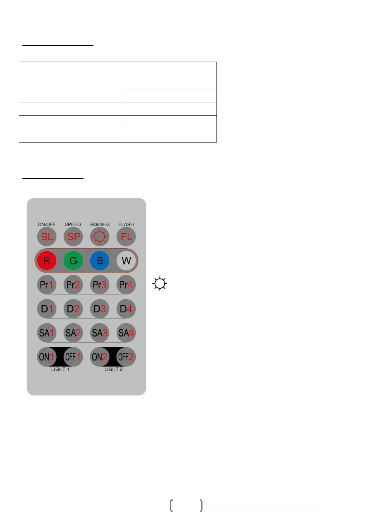 Pr1 – Pr4: Farbwechselprogramme, Über SP lässt sich die Geschwindigkeit regeln.