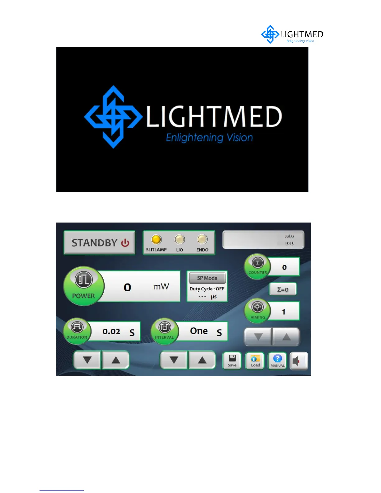 Lightmed LightLas 532 - System Software Start up Screen Shot; System Software Boot up Ok and System Is Standby Mode