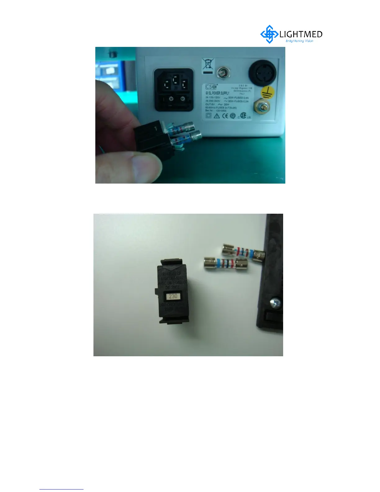 Lightmed LightLas 532 - B) Removal Fuse Socket; C) Removal Fuses