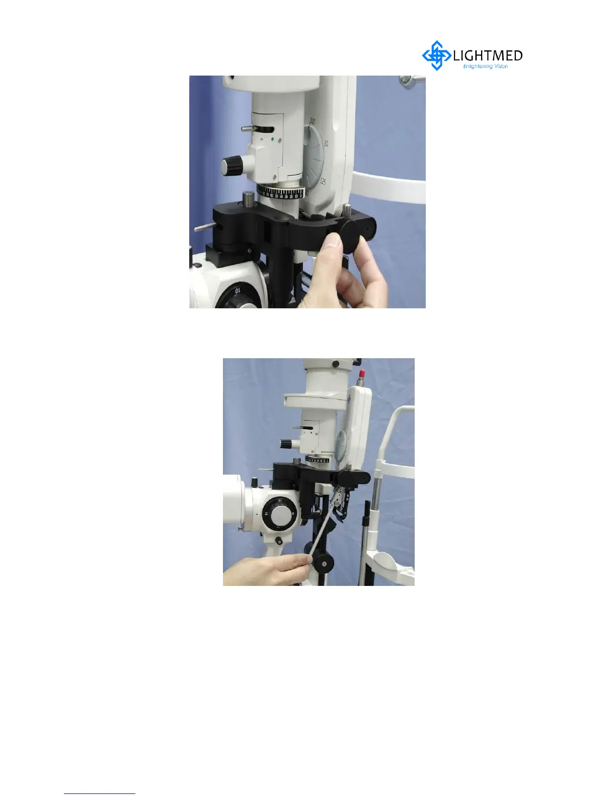 Adjust the Attachment LDU Spot Size Focus using the knob on the mounting arm