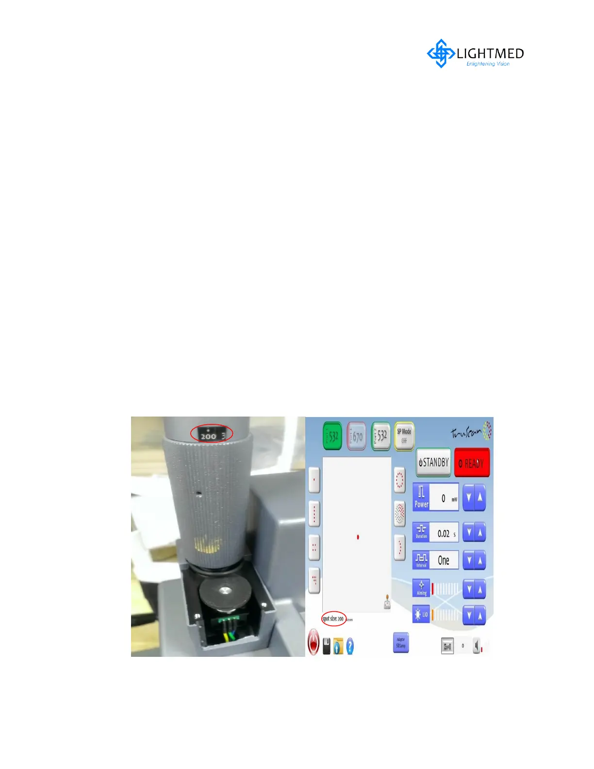 5. Engage the 'Treat' mode validate if system is activated and aiming spot size