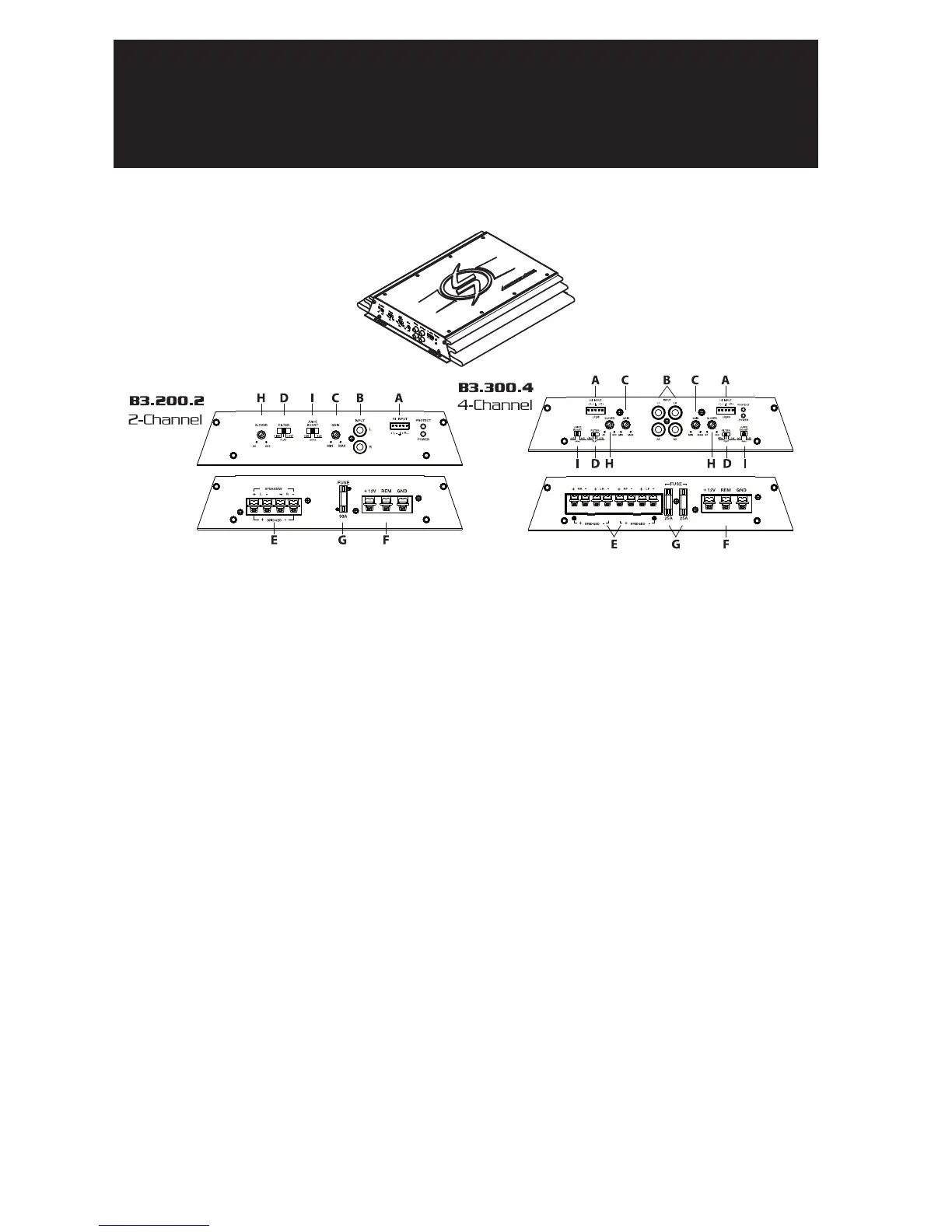 E. Connexions de haut-parleurs : respectez les polarités et ne mettez à la masse aucun fil de