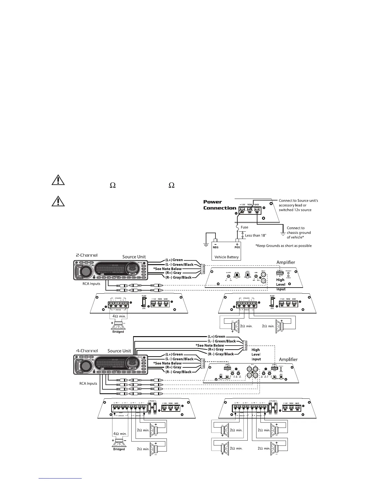 CAUTION: These amplifiers are not recommended for impedance loads below