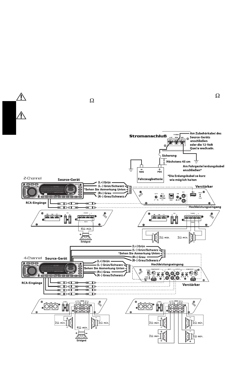 VORSICHT: Diese Verstärker werden nicht für Impedanzbelastungen unter 2