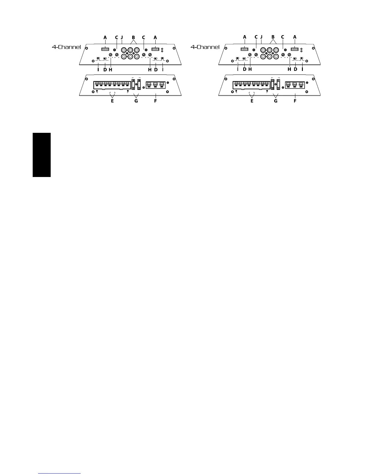 A. Hochpegel(lautsprecher)eingänge: Die Hochpegeleingänge haben ein abnehmbares Anschlussteil