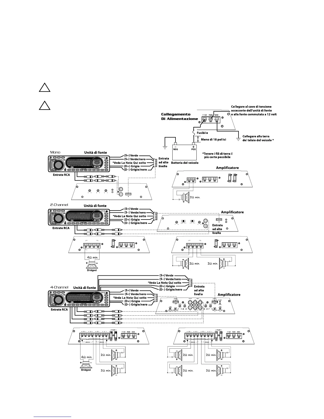 altoparlanti. NON collegate a massa nessudei cavi dell’amplificatore in quanto ciò potrebbe dar luogo ad