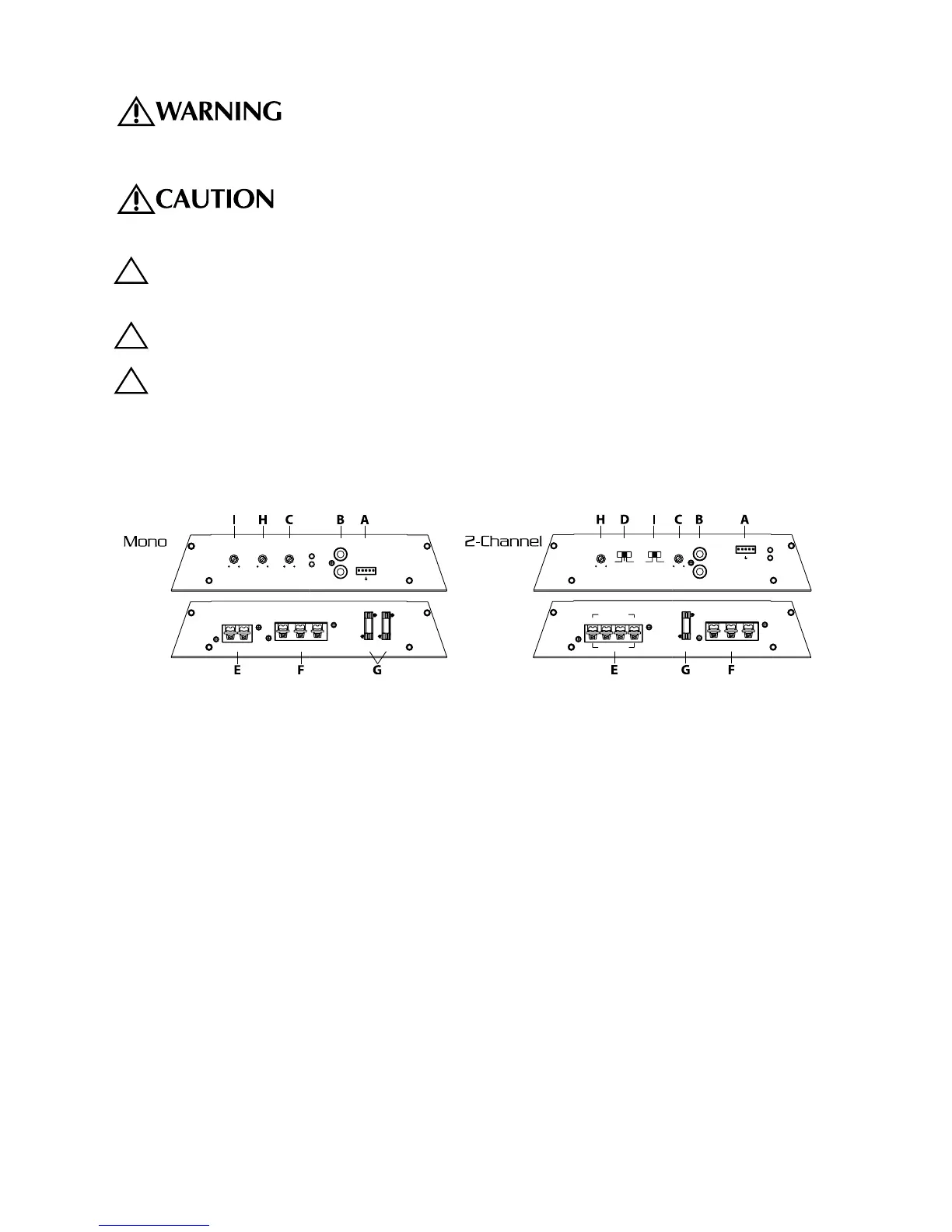 Speaker Connections: Follow correct polarity, and do not Ground any speaker wires. Do not