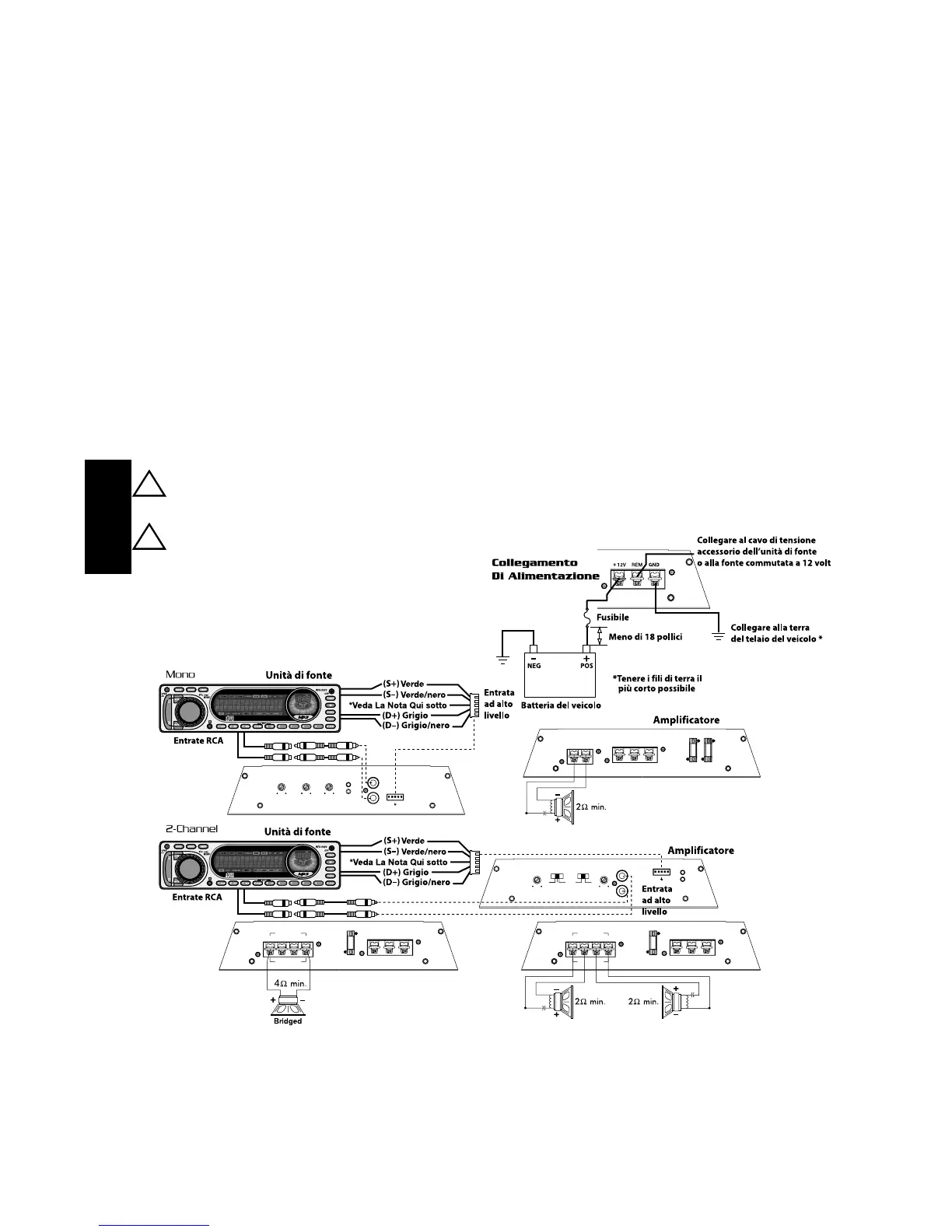 altoparlanti. NON collegate a massa nessudei cavi dell’amplificatore in quanto ciò potrebbe dar luogo ad