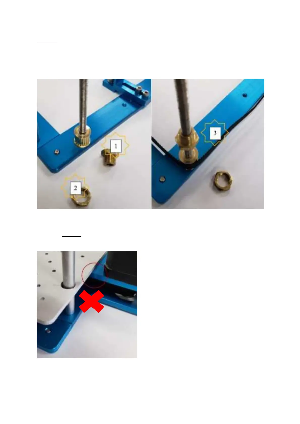 Important: The T-nut will provide support to the bed, so make sure that all T-