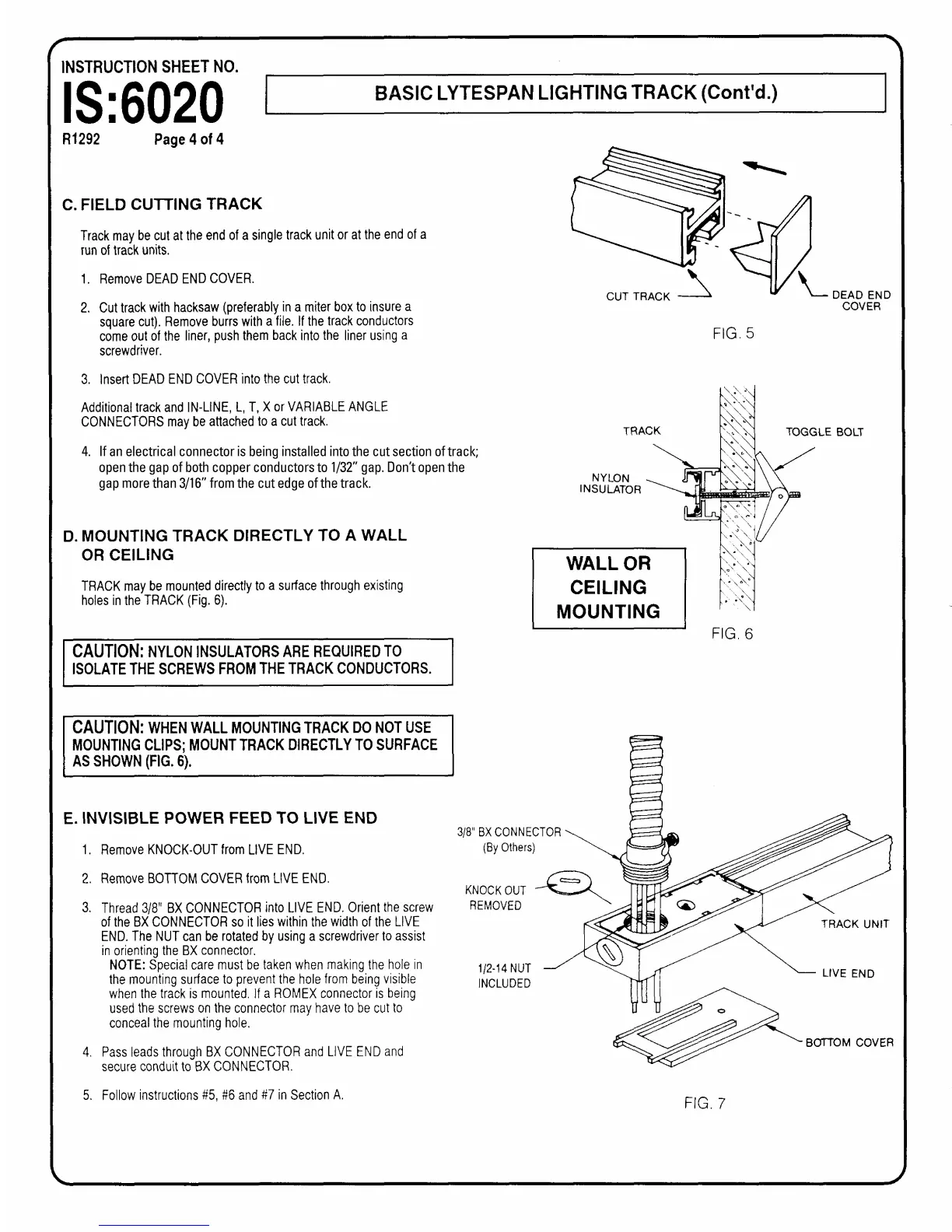 Lightolier Lytespan Track Lighting - Field Cutting Track; Mounting Track Directly to a Wall or Ceiling; Invisible Power Feed to Live End