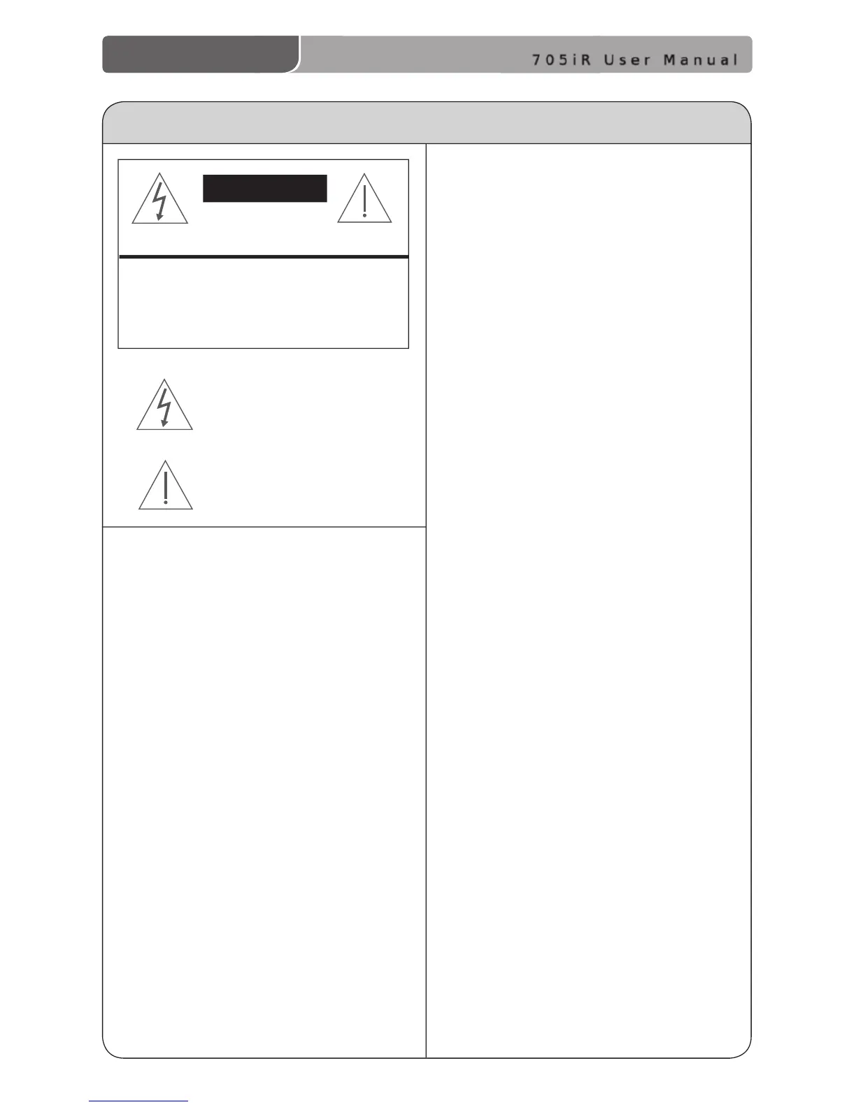 ii | 705iR User Manual
