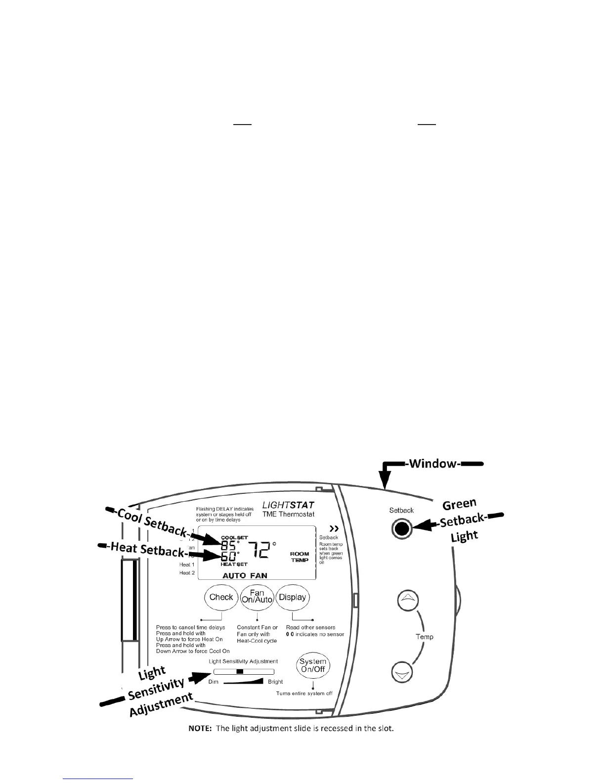 LIGHT. When the Setback light is on, the Cool Set and Heat Set temperatures