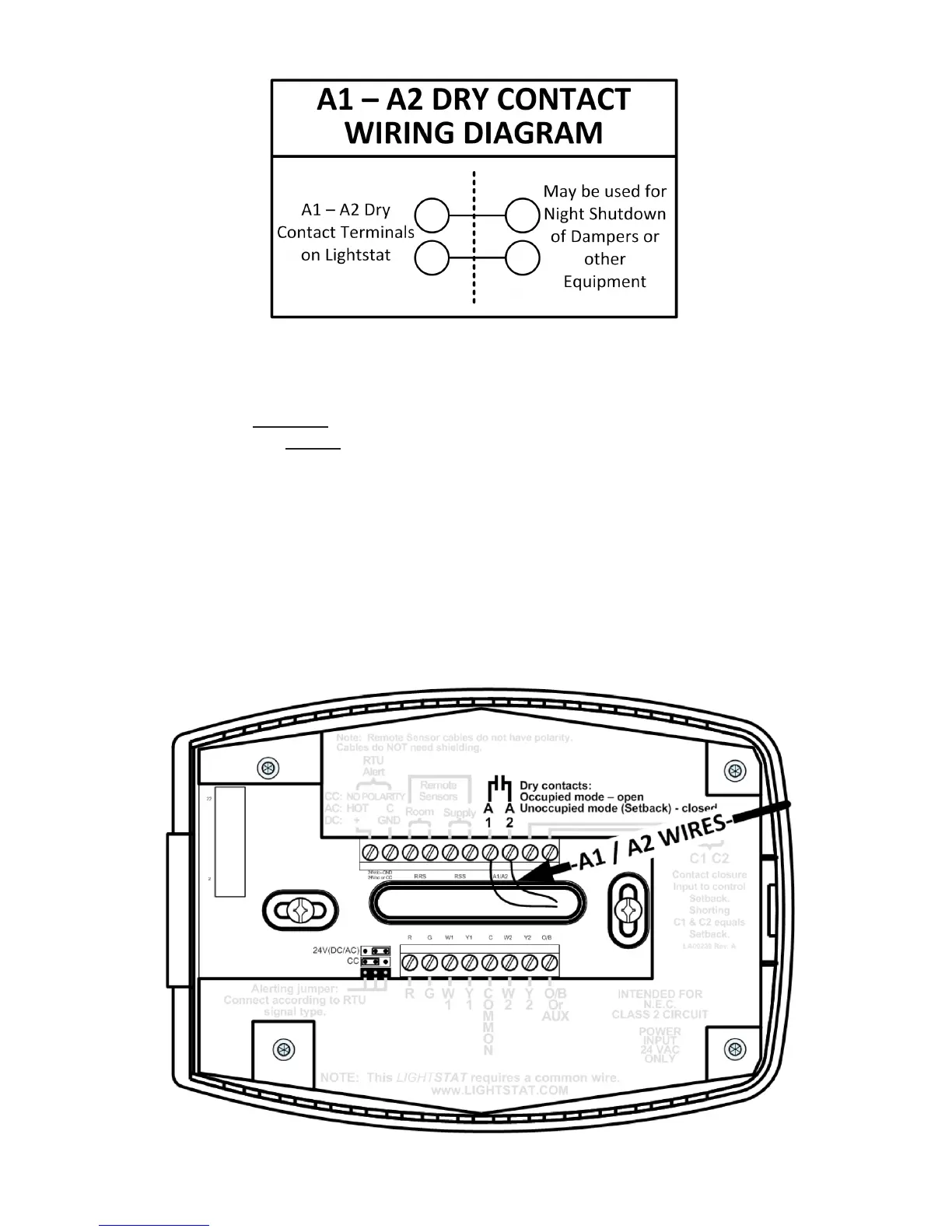 The A1 and A2 terminals are an isolated set of dry contacts rated at 2 amps (24-