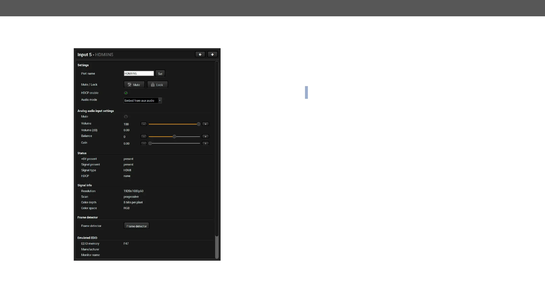 HDMI Input Port Properties Window in MMX8x4-HT420M model