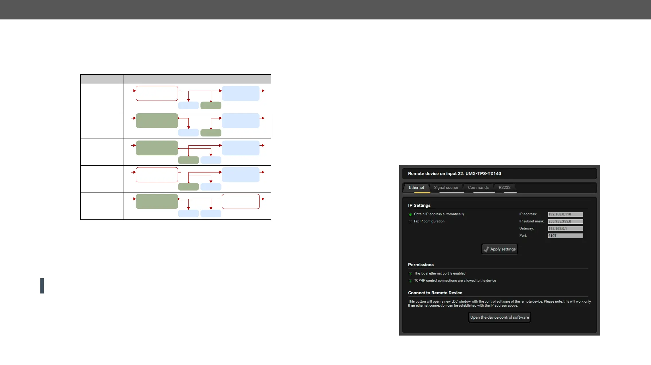 The required mode can be HDBaseT, Longreach, Automatic, RS232 only and RS232+ETH only. For detailed