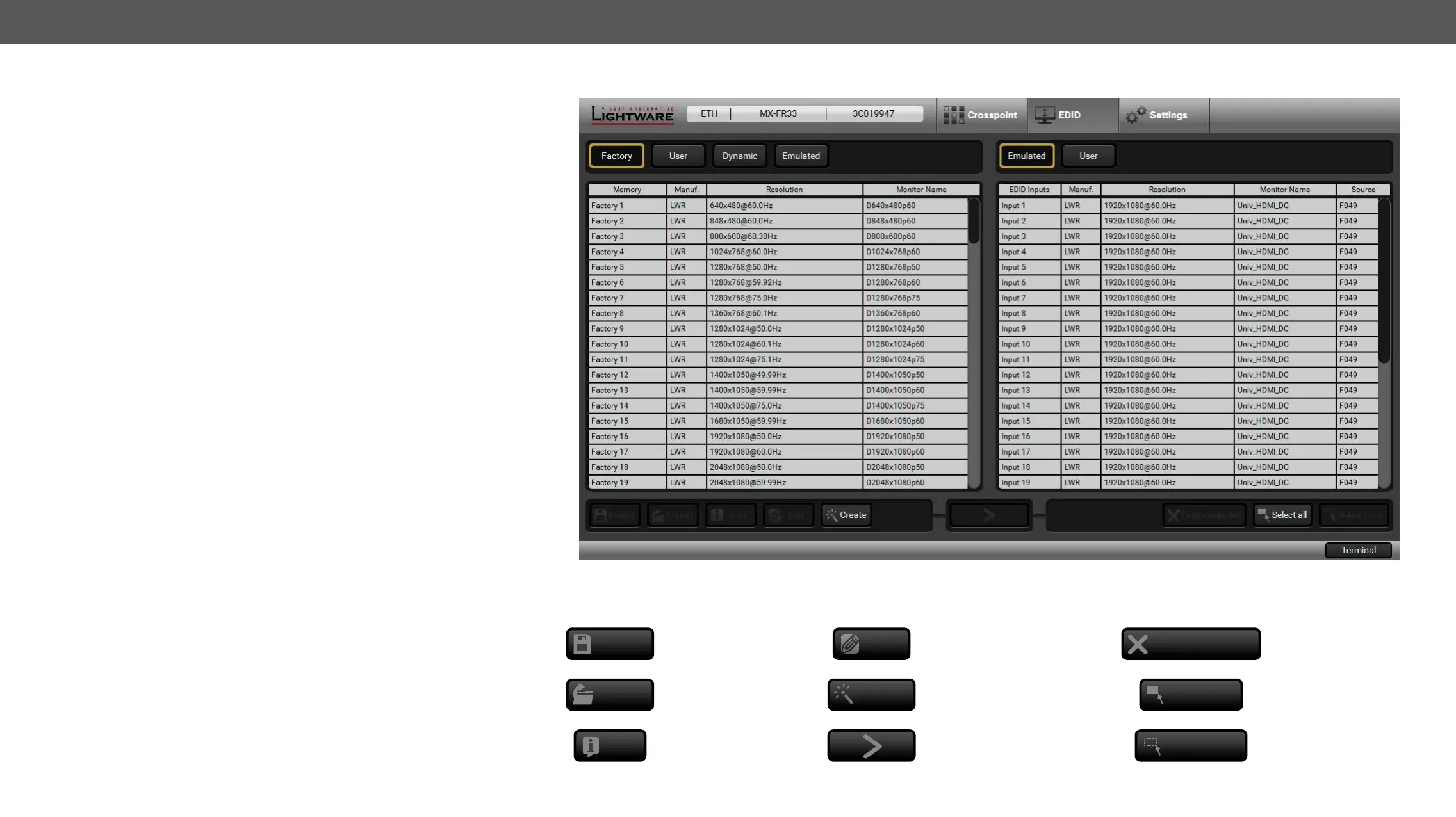 ▪ Factory EDID list shows the pre-programmed EDIDs (F1-F119).