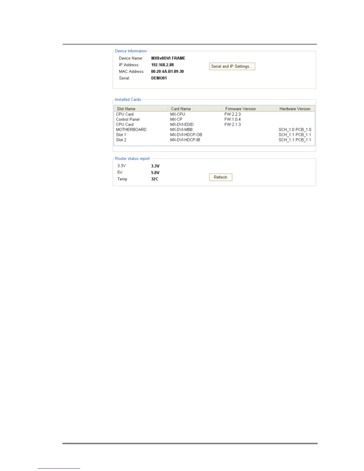 viewed by clicking on the “Serial and IP Settings...” button. Now the window