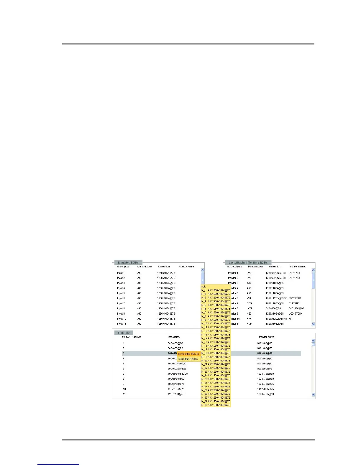 Info: The user can switch and learn EDIDs in the Last Attached Monitors EDIDs