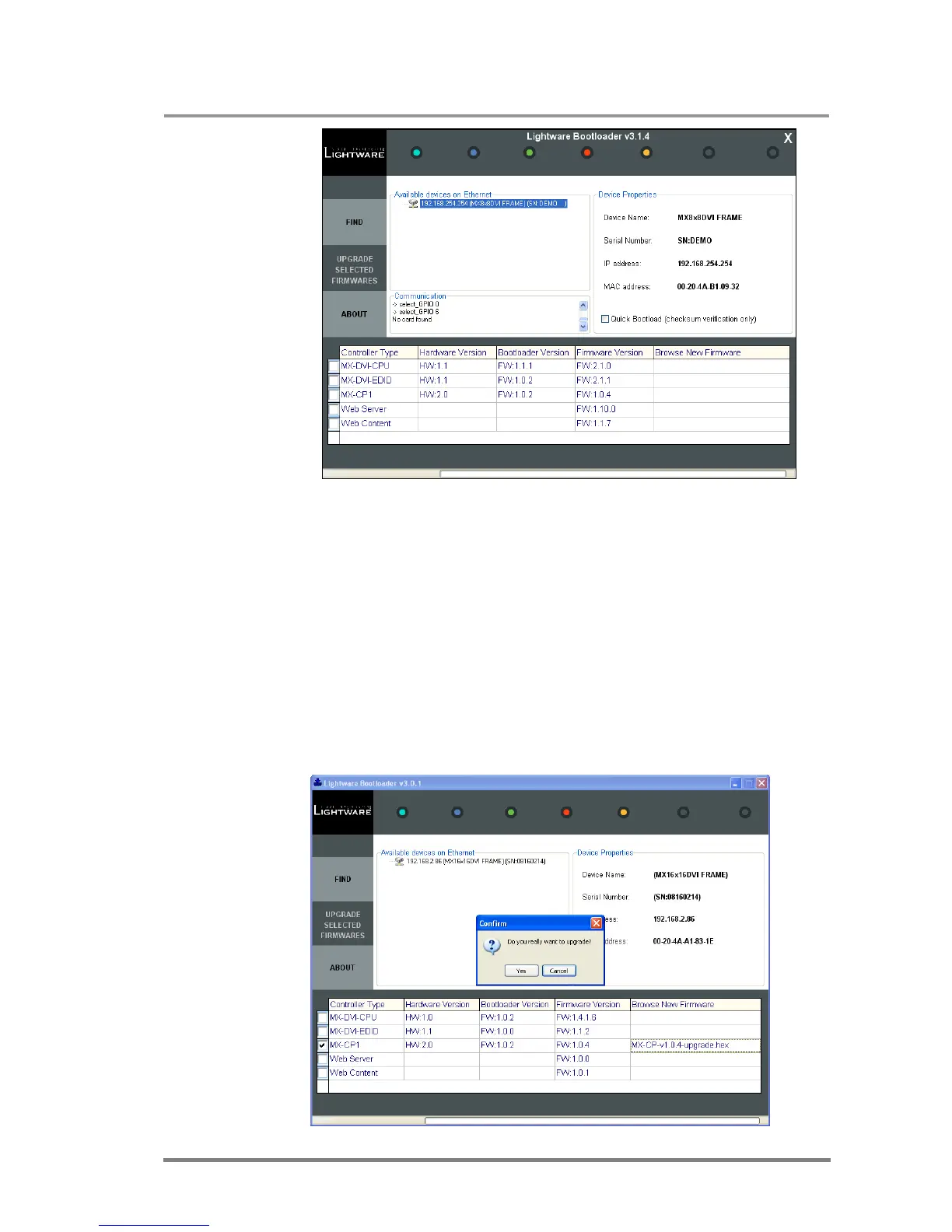 reprogrammed with the selected firmware after clicking on ”YES” button. If you