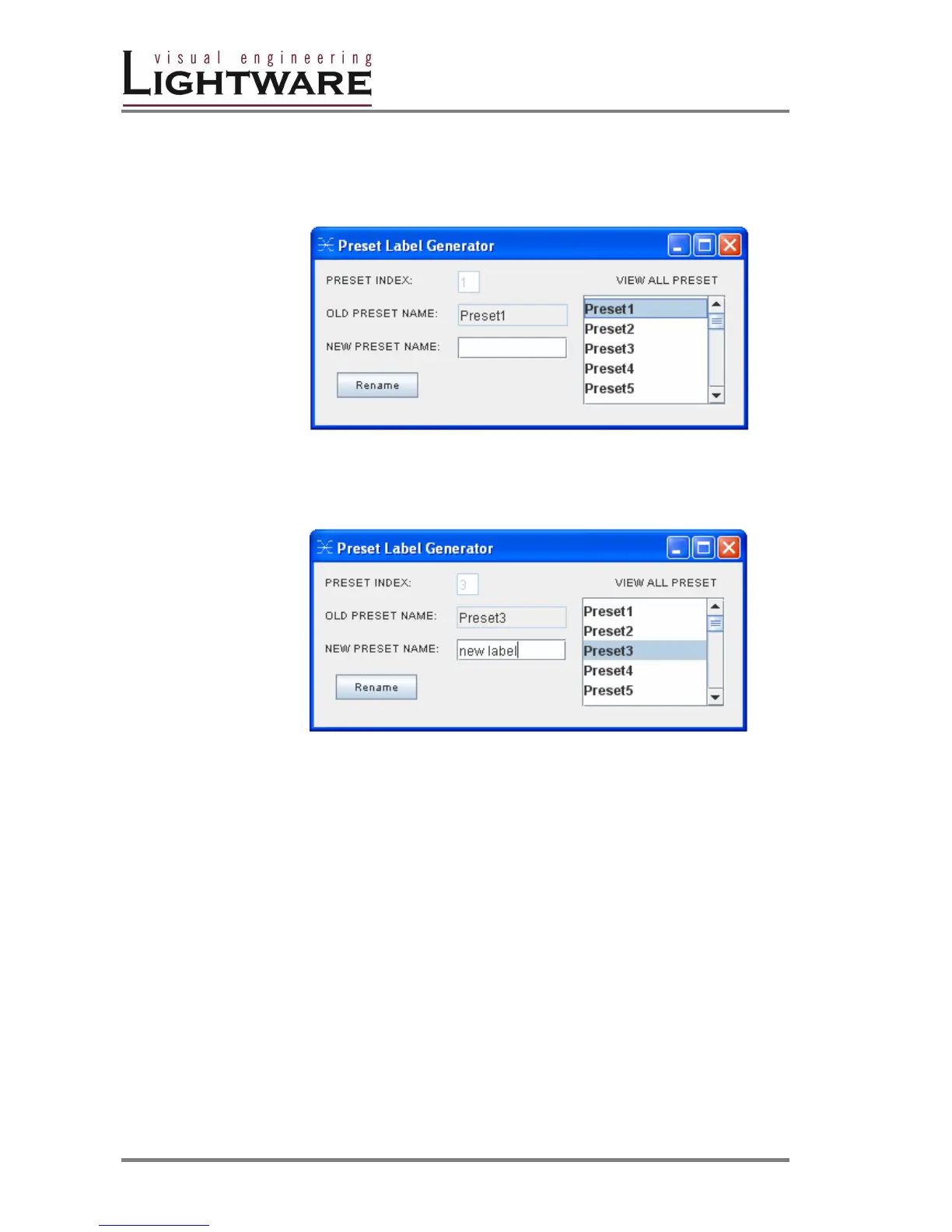 renamed. To modify these labels right-click on the preset list. The following window