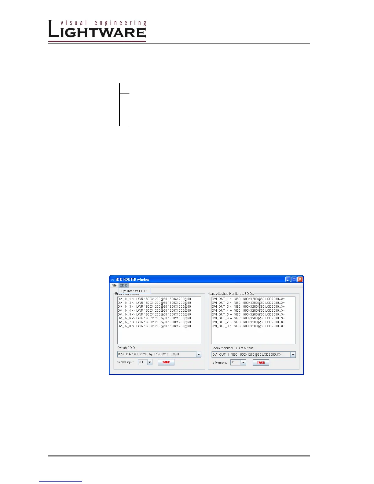 Selecting Synchronize EDID menu the Lightware Matrix Controller