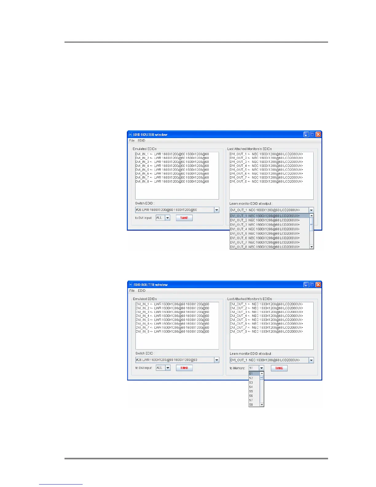 3. Press TAKE button. Now the EDID is stored in Matrix non volatile memory.