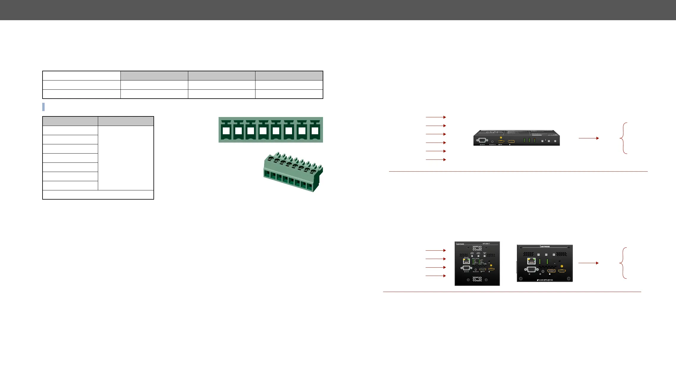 Ethernet, RS-232, and Infrared signals. Analog audio signals can be received via the 3.5” TRS (jack) and the