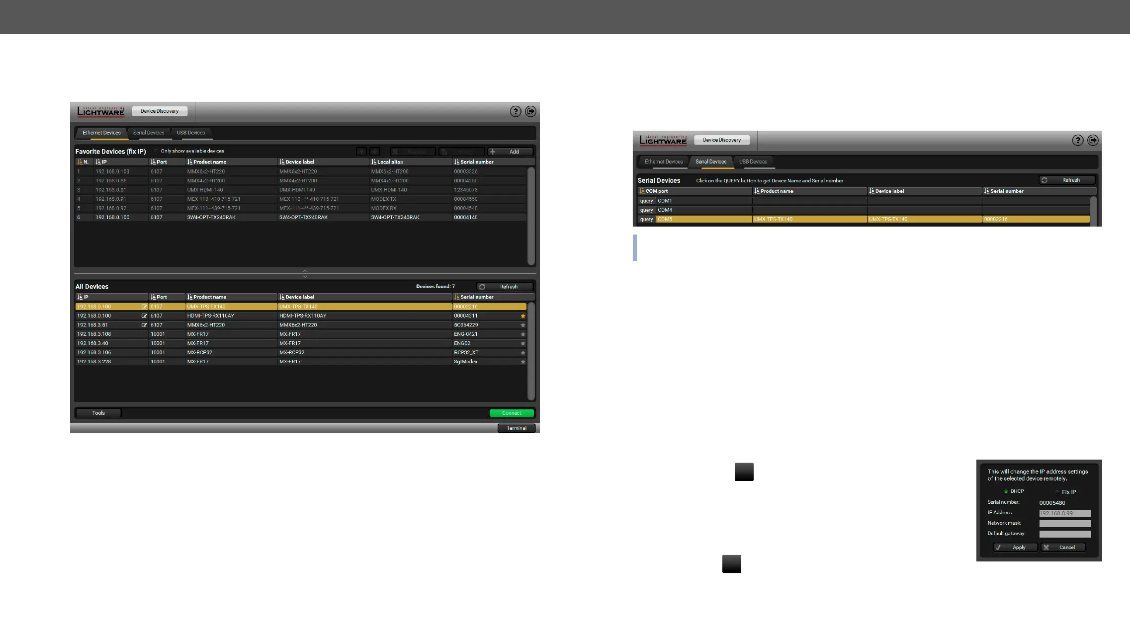 ▪ All Devices: The Lightware devices are listed which are available in the connected network.