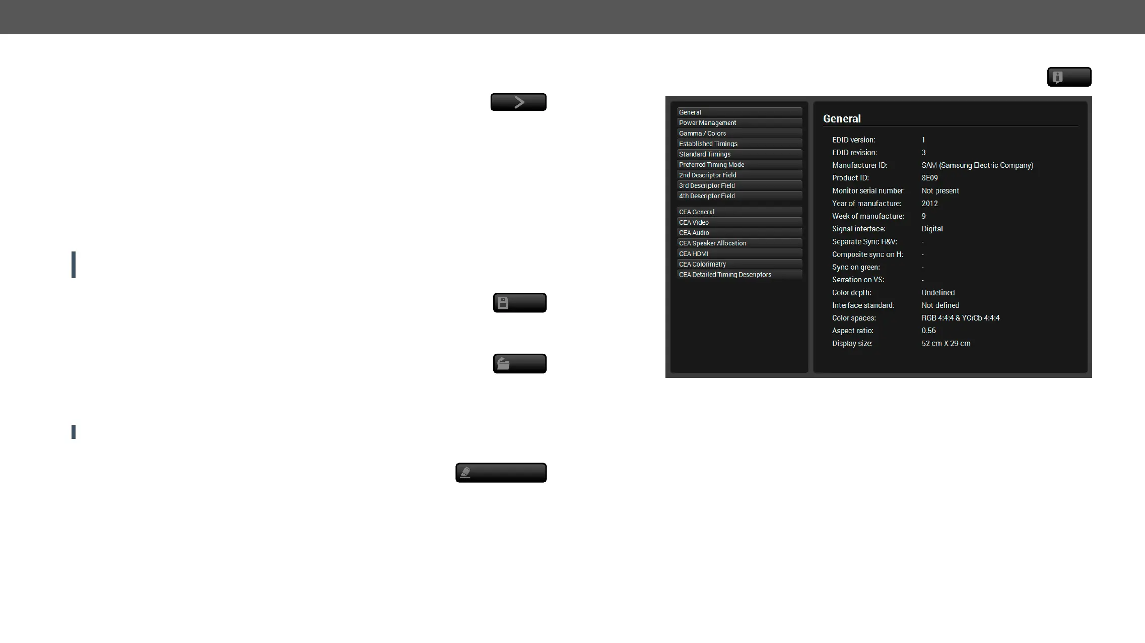 Select an EDID from Source panel and press Info button to display EDID summary.
