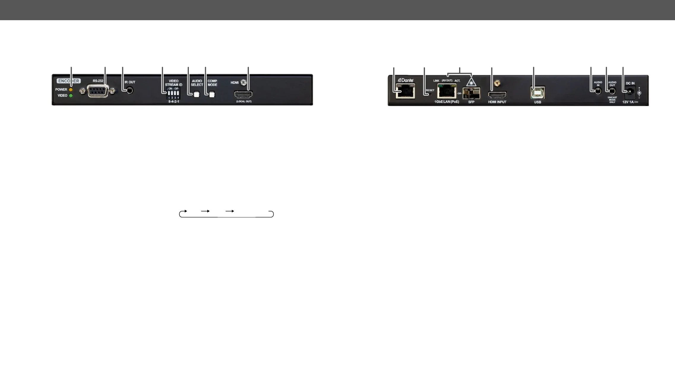transmitted as a 2-channel Dante® or AES67 source. Applied cable shall