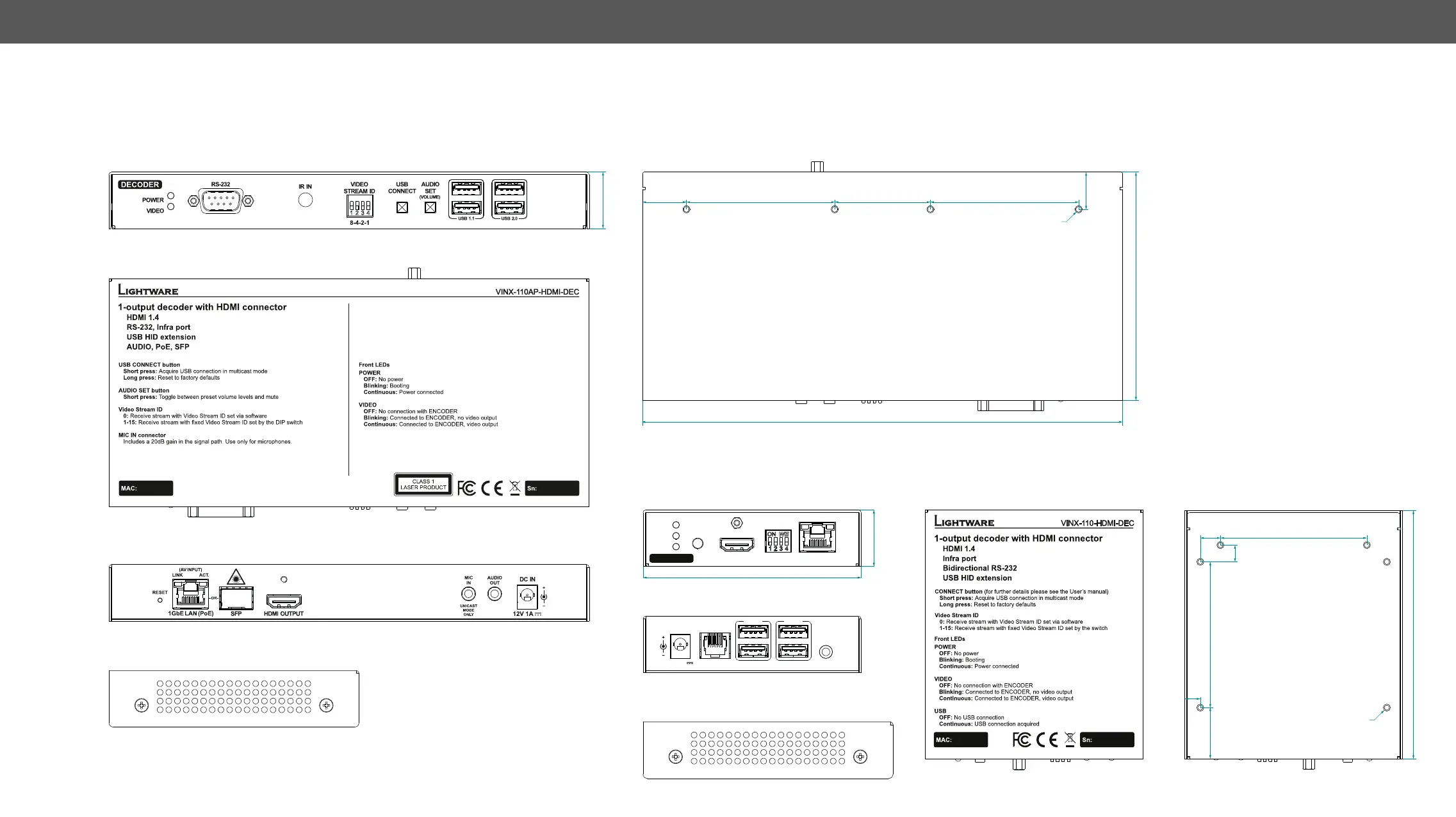 Lightware VINX-110-HDMI-DEC - Mechanical Drawings