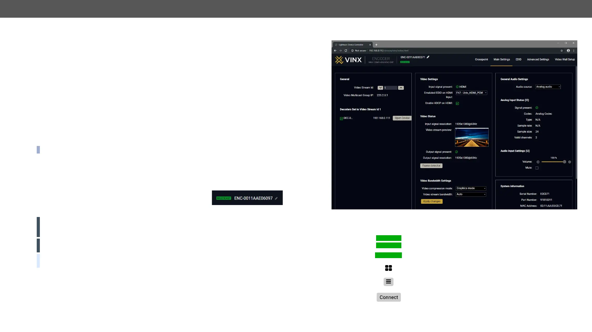 The Main Window of the Built-in Web Page (Encoder) – Displayed on a Computer