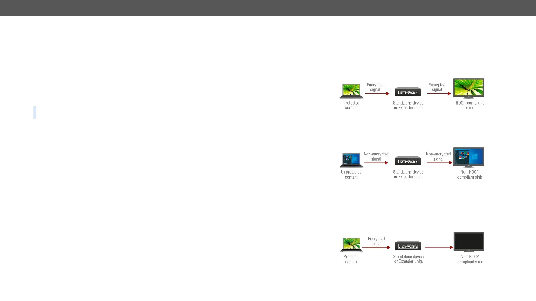 all the time (e.g. computer desktop image). If HDCP is enabled in the matrix, the image will not be displayed