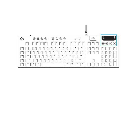 G915 viršutiniame dešiniajame klaviatūros kampe yra medijų valdikliai.