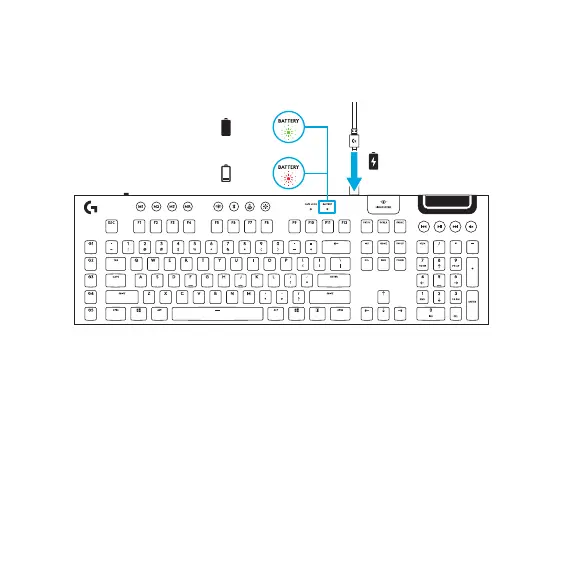 Kai klaviatūrą reikia įkrauti, padega raudonai.