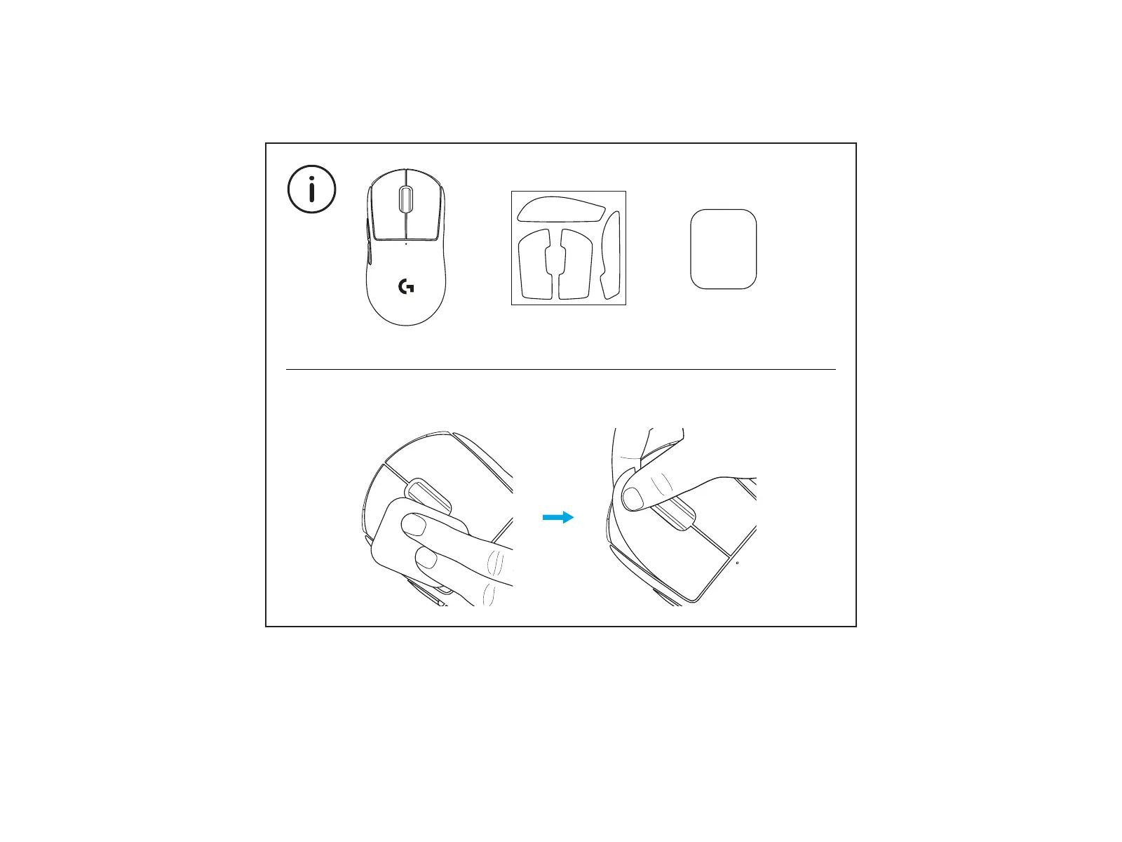 To install optional grip tape, rst clean surface of mouse with
