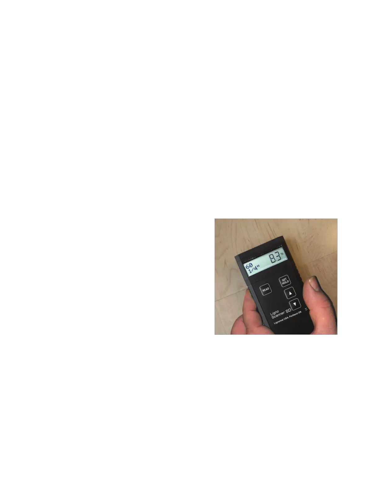 aff ecting the readings. With the Ligno-Scanner SD on the 1/4” depth setting, you defi -
