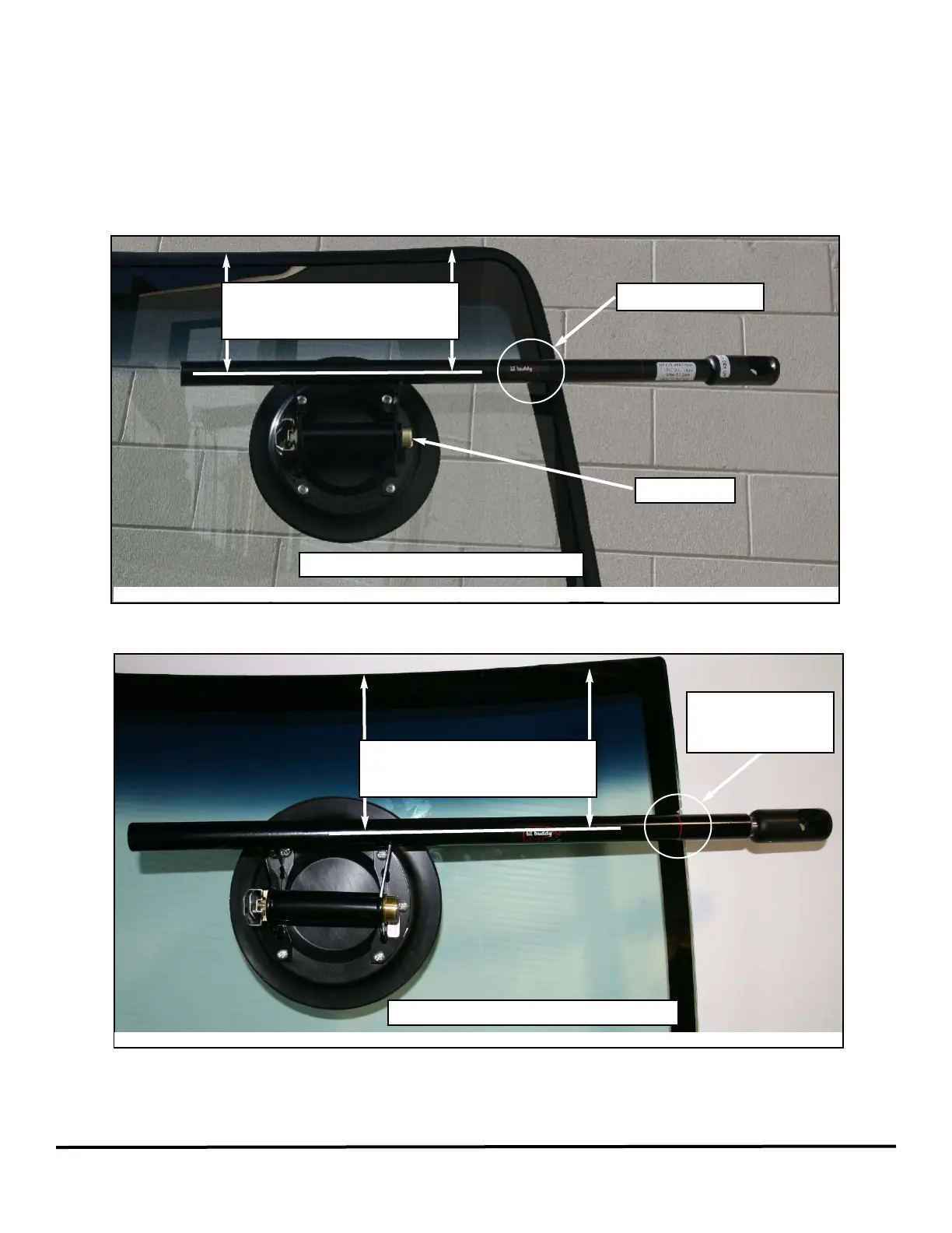 • The Lil Buddy lable on the rod is just on the edge of the windshield. See figure 8.