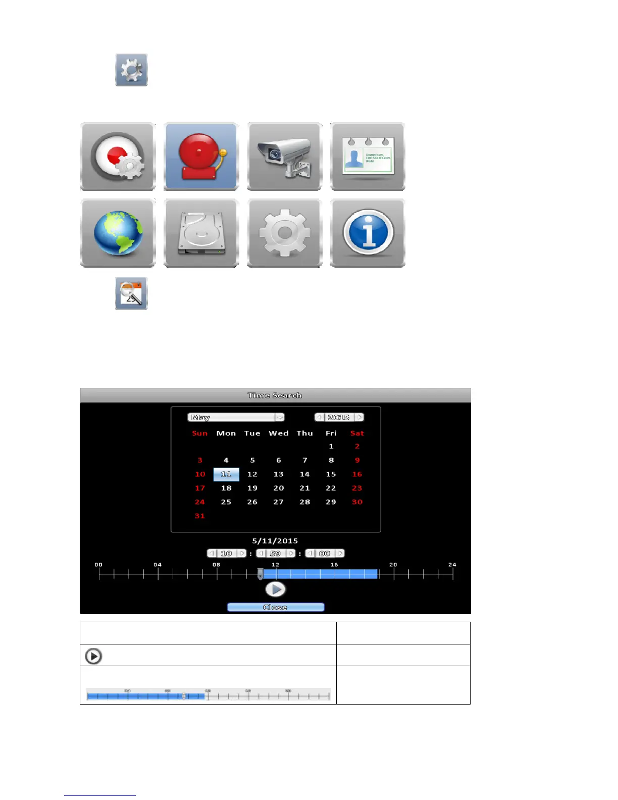 You can search and playback recorded data of specific dates and time. Dates including recordings are