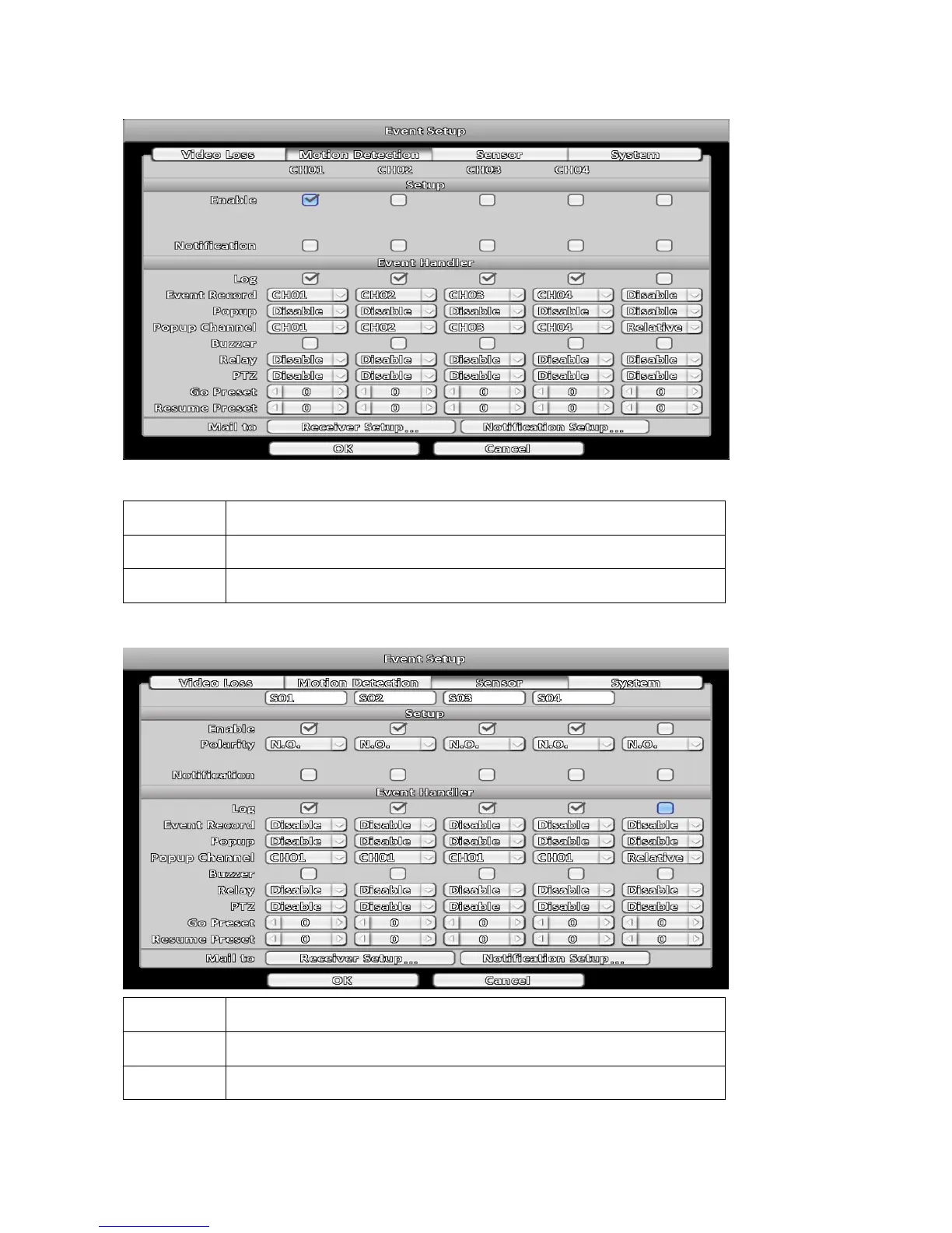 Enable Enable / Disable the motion detection function for channels