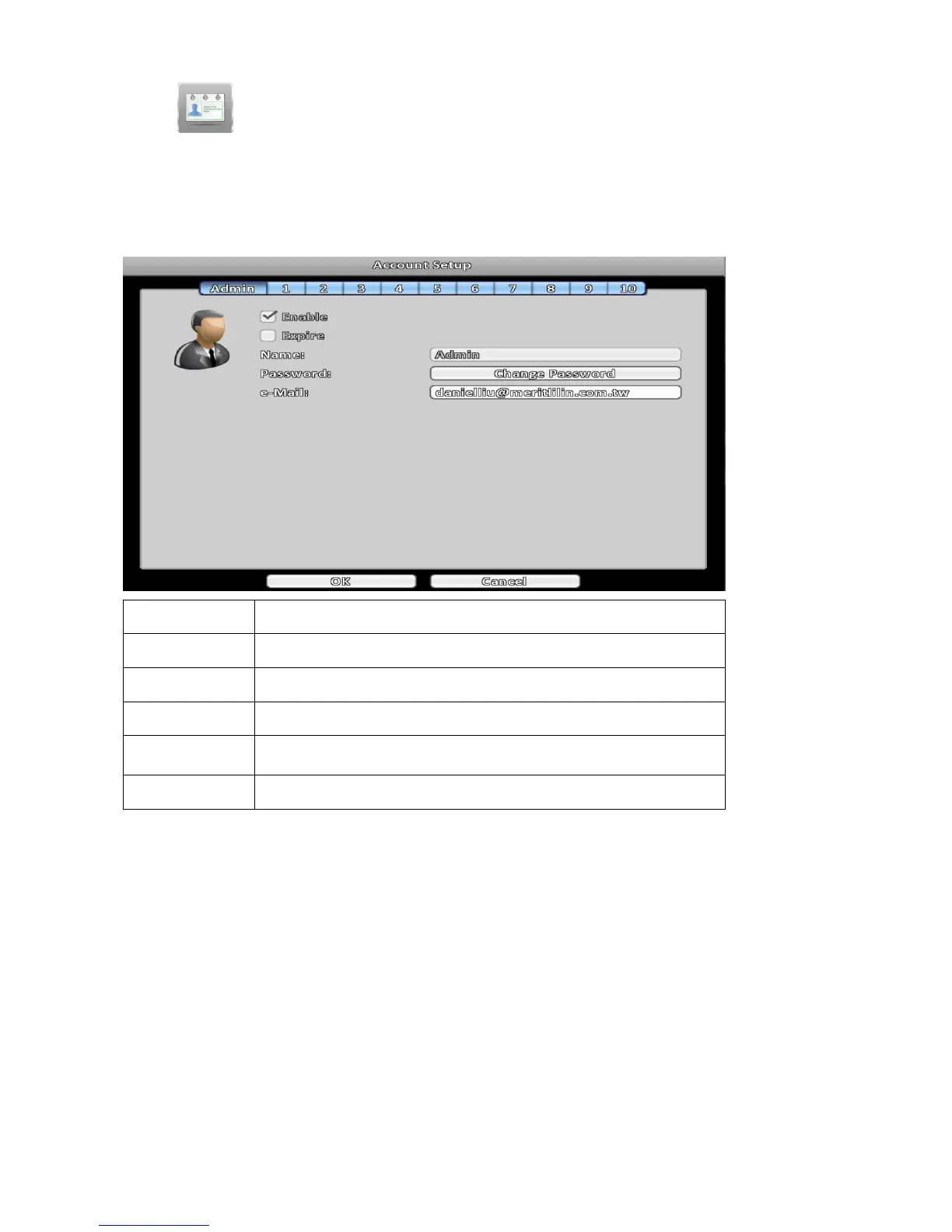 You can set the user password and permissions of 11 user accounts (1 admin + 10 users). These different