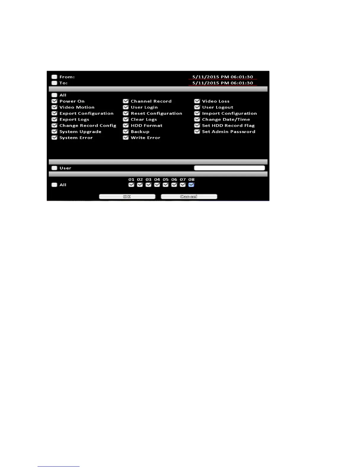 events within the specific time period. If the user uncheck some events and press OK, the lists will only show