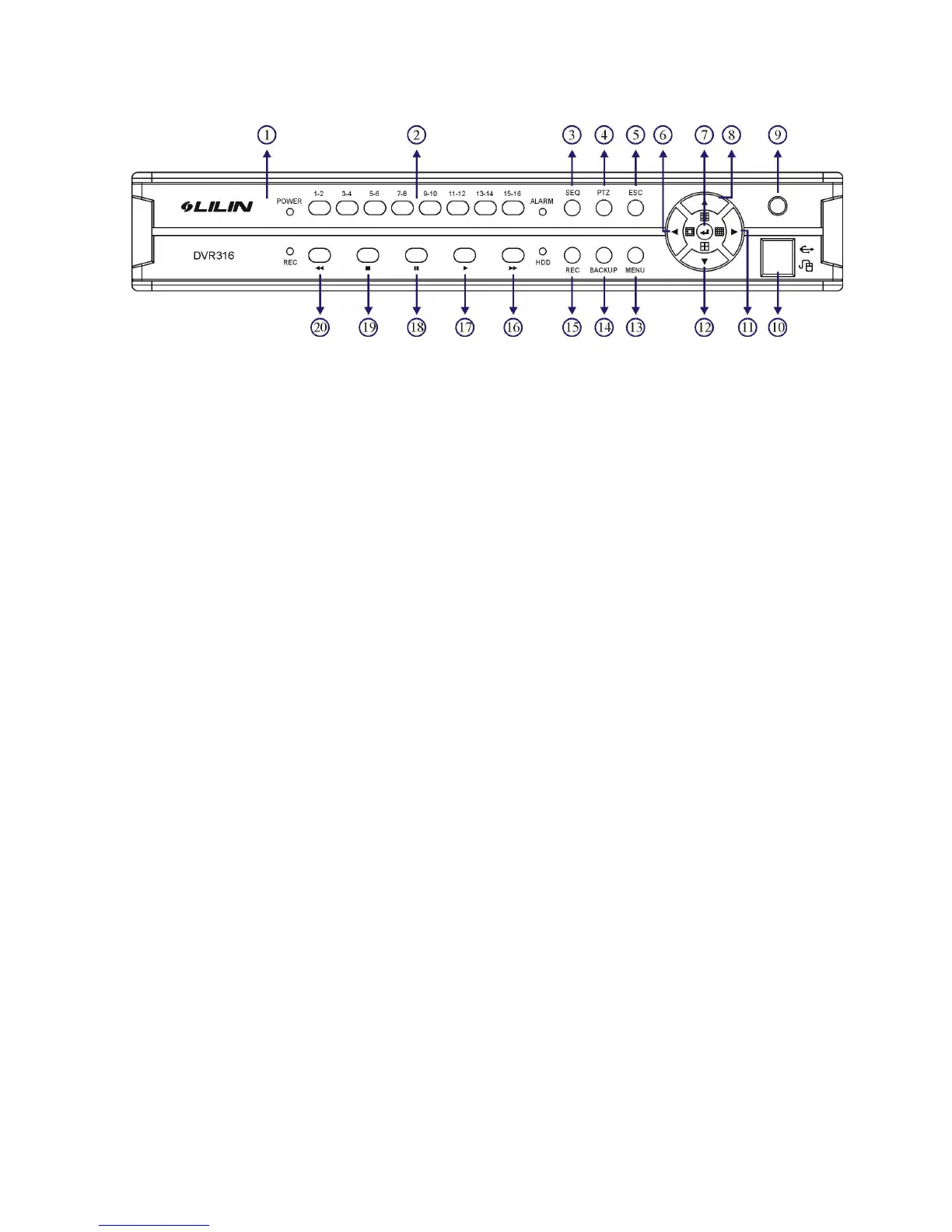 9. Remote control IR receiver Live: freeze video, playback: pause video