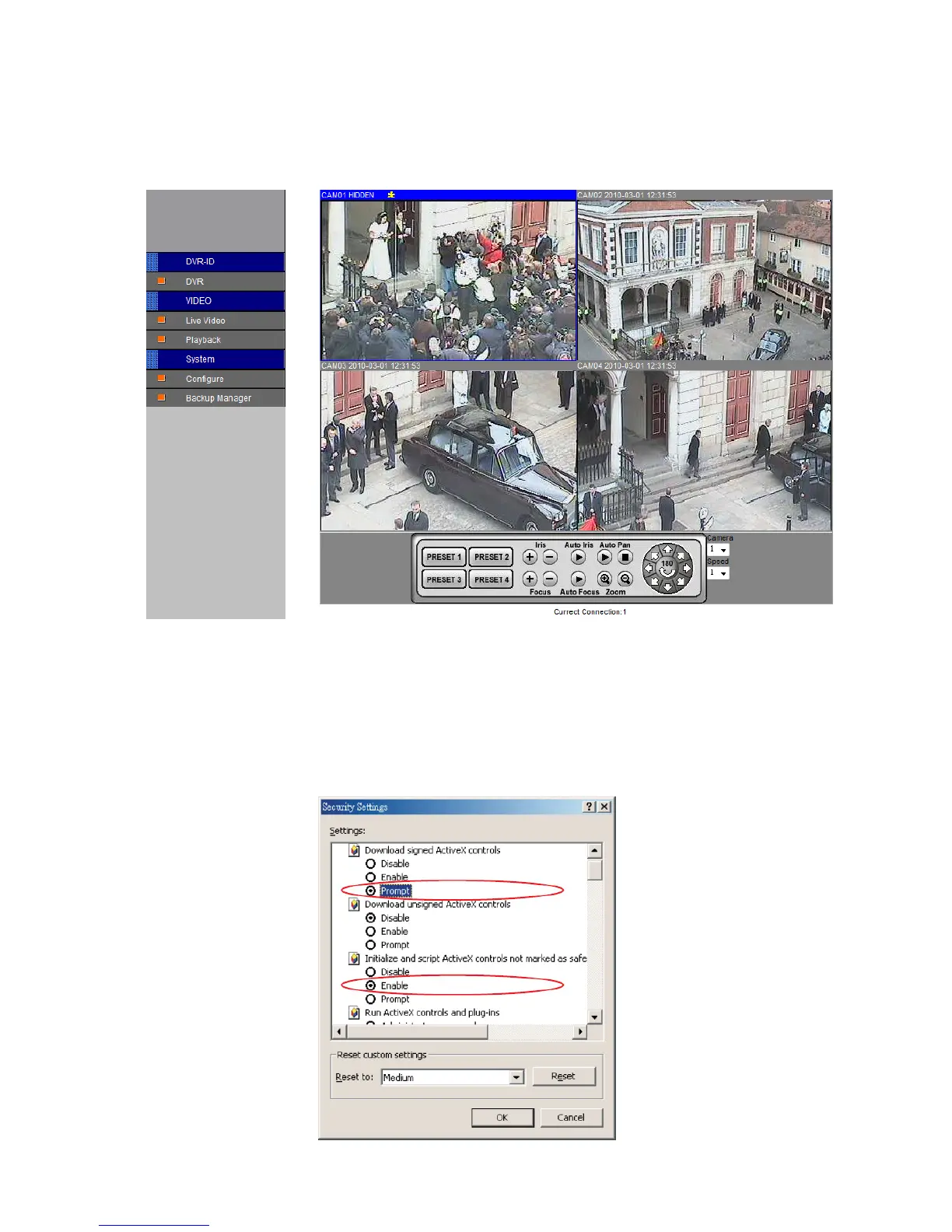 Make sure that your Internet Browser allows signed ActiveX plug-in running on your PC. Set